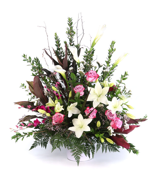 Bien prendre note que l’arrangement est susceptible de changer selon la disponibilité en magasin lors de la commande. Cependant, l’aspect général sera respecté.