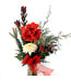 Ce bouquet, travaillé à la main par nos fleuristes, convient parfaitement comme centre de table festif ou cadeau haut de gamme. Il allie contraste chromatique (rouge, blanc, verts bleutés) et volumes généreux pour un rendu sophistiqué et durable — idéal pour ceux qui veulent une pièce florale qui attire tous les regards.