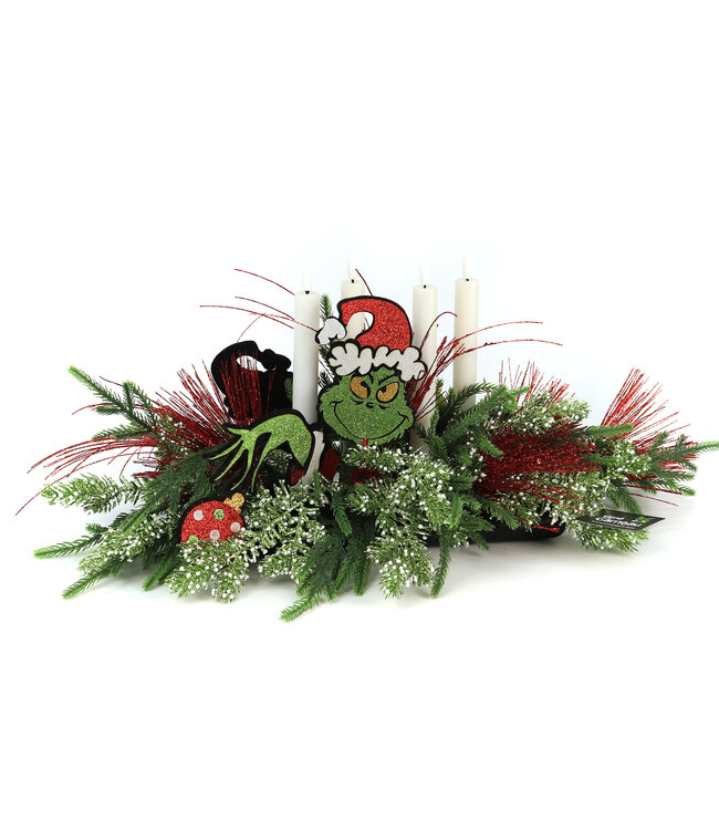 Ajoutez une touche de fantaisie à vos fêtes avec ce centre de table de Noël « Le Grinch », façonné sur mesure par les artistes de Signé Garneau. Inspiré de l’esprit espiègle et joyeux du célèbre personnage, cet arrangement associe vert vif, touches rouges et éléments festifs pour devenir la pièce maîtresse de votre décoration de table.
