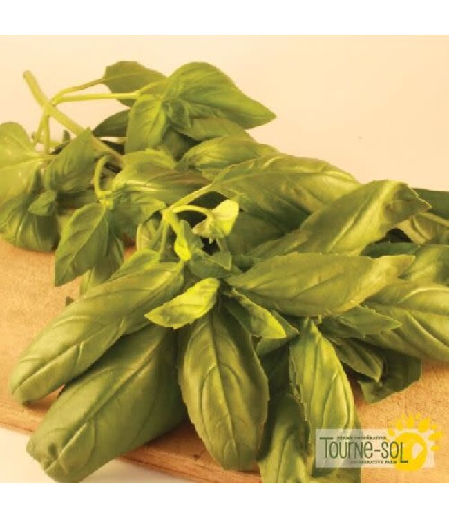 Basilic italien vert avec larges feuilles bonnes pour le pesto, brushetta, ou les pâtes. Semez à l'intérieur 6 semaines avant le dernier gel.