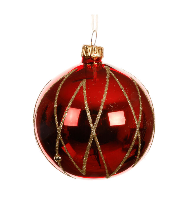 Offrez à votre décor des Fêtes une touche d’élégance pure avec cette magnifique boule de verre rouge lignée d’or.