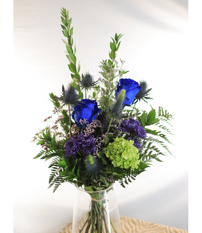 Plongez dans l'univers envoûtant de notre bouquet "Belle de Nuit". Chaque fleur, choisie avec soin, raconte une histoire de passion et de raffinement. Les teintes profondes et mystérieuses de cette composition évoquent des sentiments intenses, créant une symphonie visuelle qui touche le cœur. Bien que les variétés florales puissent varier en fonction des saisons et de la disponibilité, nous garantissons que l'harmonie des couleurs et l'esthétique générale du bouquet resteront fidèles à l'esprit de "Belle de Nuit". Offrez ce bouquet à votre être aimé et laissez les fleurs exprimer ce que les mots ne peuvent dire.