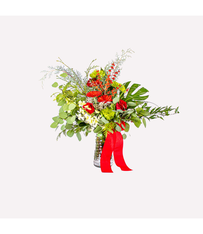 Veuillez noter que l’arrangement est susceptible de changer selon la disponibilité des fleurs en magasin lors de la commande. Cependant, l’aspect général sera respecté.