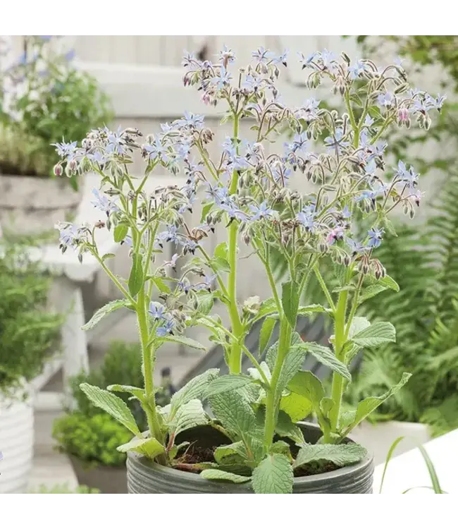 Facile à cultiver, longue floraison. Les jeunes feuilles comestibles ont un goût de concombre agrémenteront vos salades. Les jolies fleurs bleues à merveille vos boissons estivales.