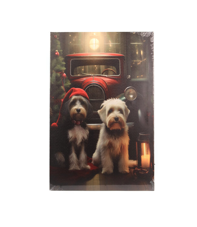 Laissez la magie du temps des fêtes illuminer votre intérieur avec ce cadre lumineux décoratif 15 po x 23 po mettant en scène des chiens dans un décor apaisant et raffiné. Ses lumières douces créent une ambiance réconfortante qui invite à la détente et à la sérénité, tout en rappelant la tendresse des instants partagés.