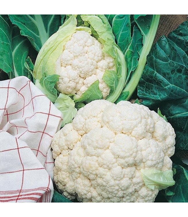Grande inflorescence blanche de bonne qualité. Se conserve bien sur le plant pendant plusieurs semaines. Semez à l'intérieur de 4 à 6 semaines avant le dernier gel. Pour que le chou-fleur conserve bien sa couleur attachez les feuilles au dessus de l'inflorescence.