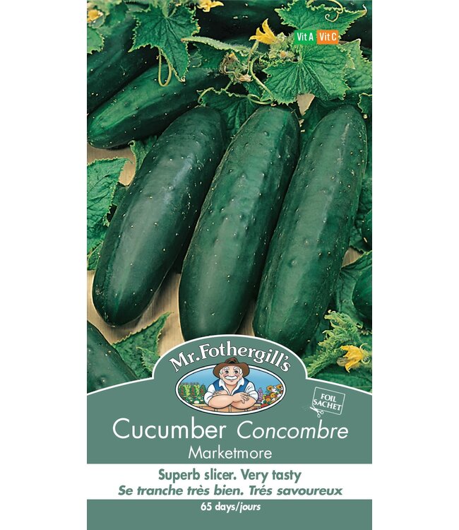 Concombre de table, idéal pour culture en contenant. Semez à l'intérieur de 4 à 6 semaines avant le dernier gel ou directement à l'extérieur.