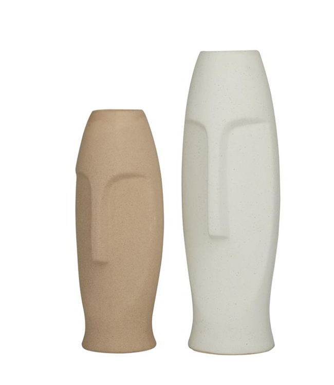 Vase en céramique visage beige 12 x 4,5 po