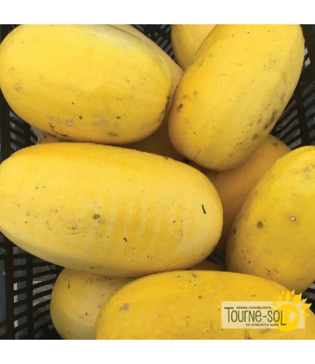 Une courge jaune dont la chair se détache comme des spaghettis, pour des pâtes sans gluten et basses en calories! Semez après le dernier gel.