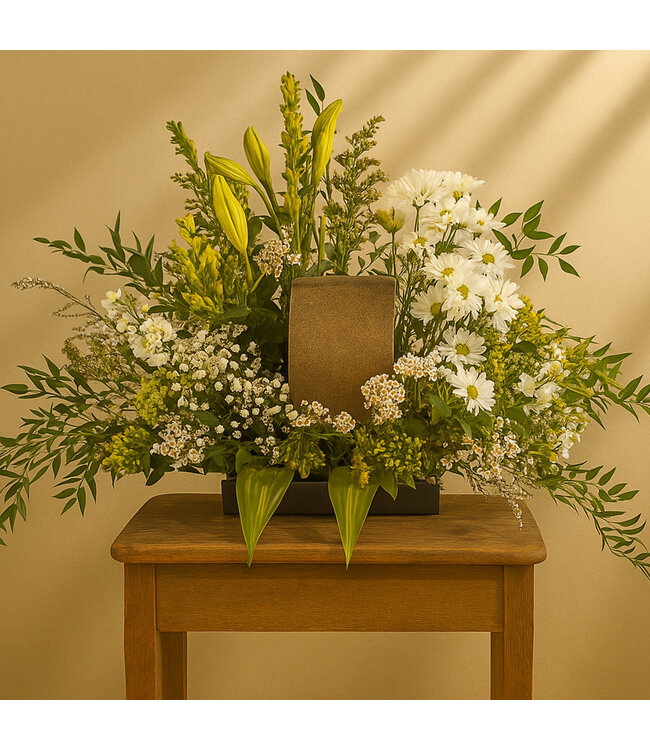 Veuillez noter que l’arrangement est susceptible de changer selon la disponibilité des fleurs en magasin lors de la commande. Cependant, l’aspect général sera respecté.