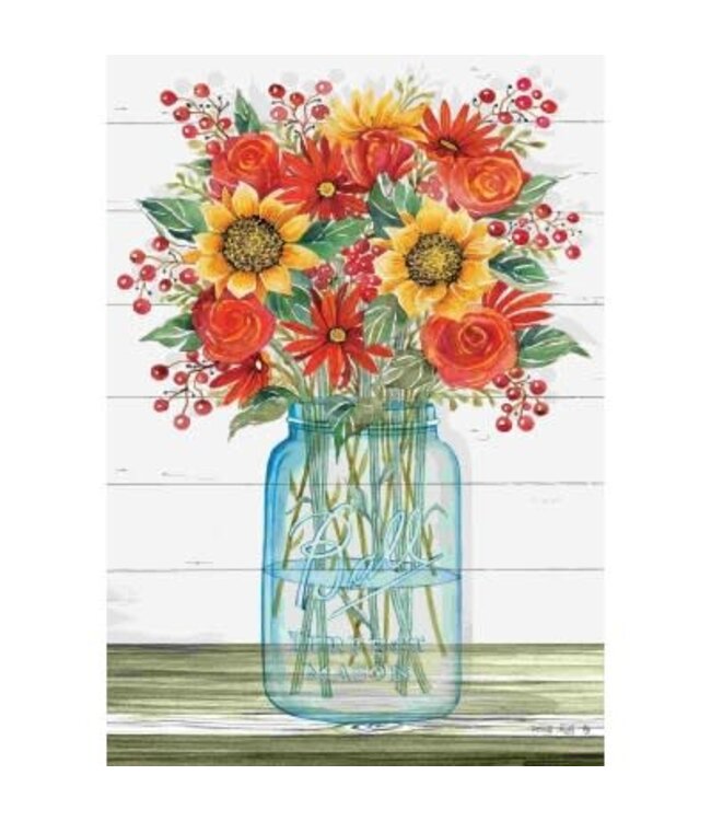 Ajoutez une touche décorative à votre maison aux couleurs d'automne avec le drapeau illustrant des fleurs des champs dans un vase. Drapeaux décoratifs pour la maison, fait d'artiste de chez nous. Drapeau pour toutes les saisons et occasions. Drapeau grandeur large 28 x 40 pouces. Nos drapeaux sont inspirés d'artistes québécois. Une partie de notre culture sur votre maison.