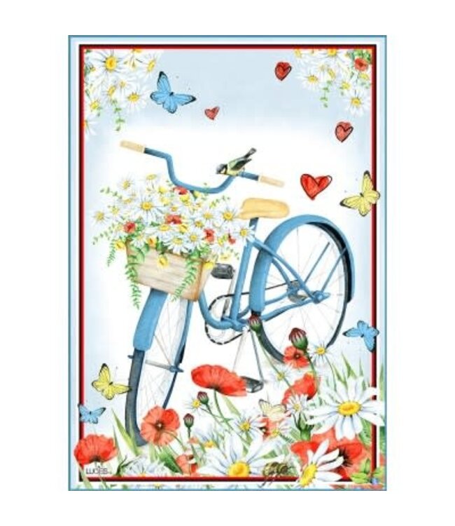 Apportez une ambiance estivale et pleine de charme à votre maison avec ce drapeau décoratif mon vélo bleu 28x40 po. Son illustration artistique mettant en scène un vélo bleu évoque les promenades en plein air, la liberté et la beauté des journées ensoleillées.