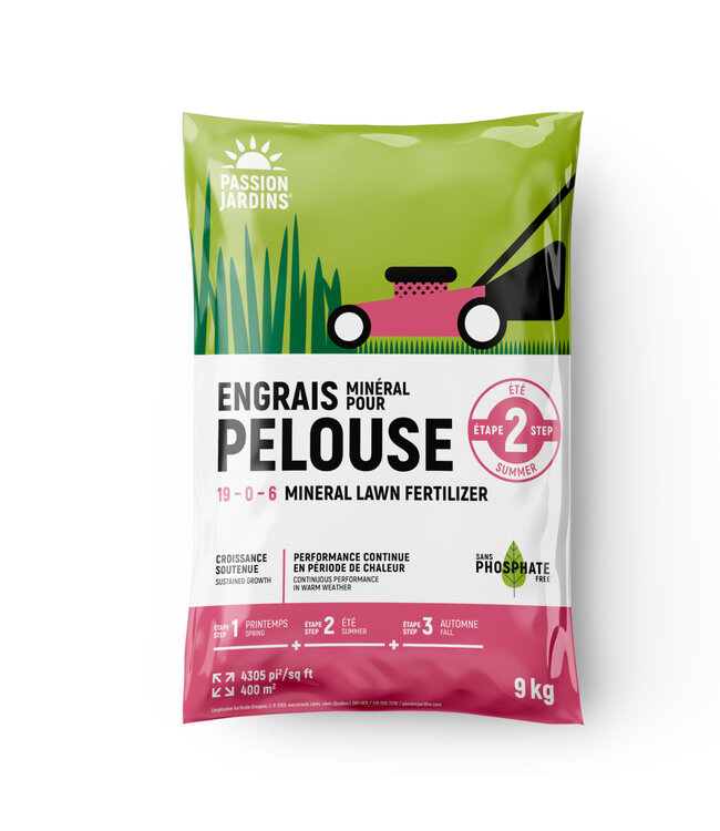 Transformez votre pelouse en un chef-d’œuvre de verdure avec l’engrais minéral pour pelouse 19-0-6 de Passion Jardins. Conçu pour favoriser une croissance soutenue, cet engrais améliore la densité du gazon, empêchant l’invasion des mauvaises herbes. Sa formulation enrichie en fer et en magnésium offre un verdoiement accru, idéal même sous la chaleur estivale. Avec son format de 9 kg, il est prêt à l’emploi et parfait pour obtenir une pelouse si belle que même les terrains de golf en seront jaloux. Sans phosphate, il allie performance et respect de l’environnement pour embellir votre extérieur. Prenez soin de votre gazon cet été et vivez la satisfaction d’un jardin impeccable! À utiliser l'été comme 2ième étape. Commencer le printemps avec l'étape 1 et terminer par l'étape 3 l'automne.