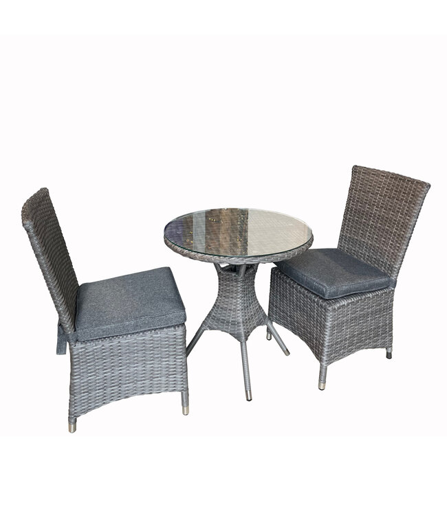 L’ensemble bistro Windsor de la collection Atleve est idéal pour les espaces restreints tels que les balcons ou petites terrasses. Composé de deux chaises confortables avec coussins et d’une table ronde en verre amovible, il offre une solution élégante et fonctionnelle pour vos moments de détente en plein air