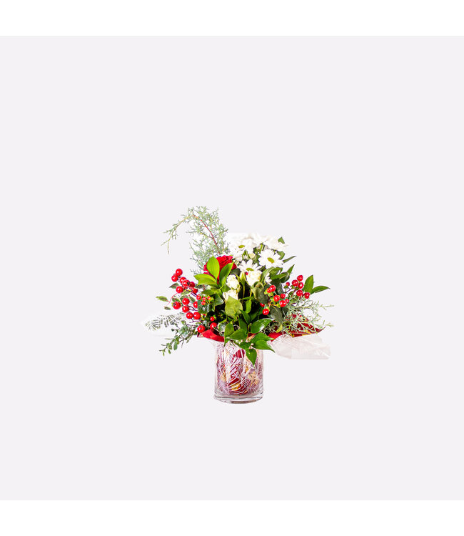 Veuillez noter que l’arrangement est susceptible de changer selon la disponibilité des fleurs en magasin lors de la commande. Cependant, l’aspect général sera respecté.