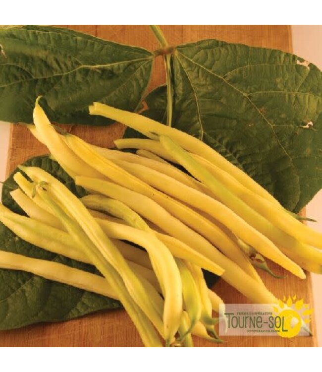 Haricot nain jaune. Reste tendre sur le plant. Semez après le dernier gel chaque 2 à 4 semaines.
