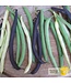 Un mélange d'haricots nain verts, jaunes et mauves.