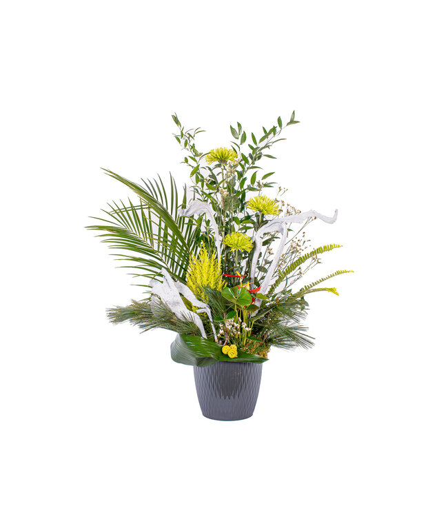Veuillez noter que l’arrangement est susceptible de changer selon la disponibilité des fleurs en magasin lors de la commande. Cependant, l’aspect général sera respecté.