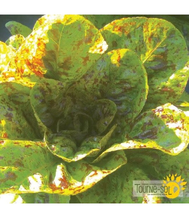 Laitue romaine avec un accent de rouge sur les feuilles. Semez toute la saison à chaque 2 à 4 semaines.