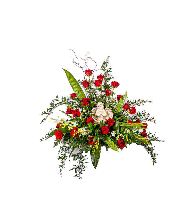 Veuillez noter que l’arrangement est susceptible de changer selon la disponibilité des fleurs en magasin lors de la commande. Cependant, l’aspect général sera respecté.