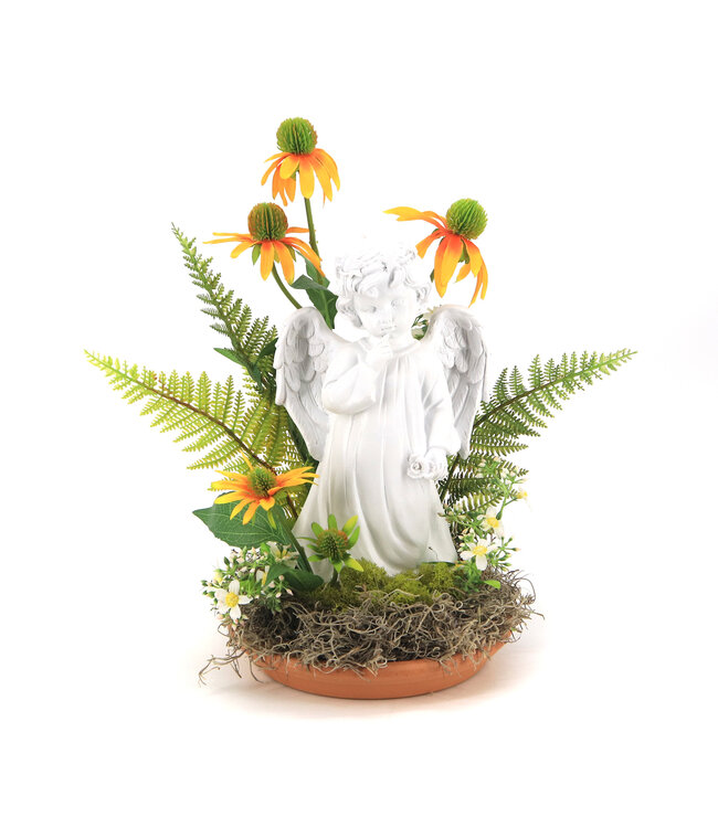 Offrez un hommage plein de sérénité et de respect avec cet arrangement funéraire raffiné représentant un ange protecteur entouré de fleurs artificielles élégantes. Chaque composition est conçue pour évoquer paix, mémoire et beauté durable — idéale pour une tombe, une cérémonie de recueillement ou comme pièce commémorative à déposer lors d’un service funéraire. Les fleurs synthétiques garantissent une tenue impeccable à l’extérieur, sans entretien.