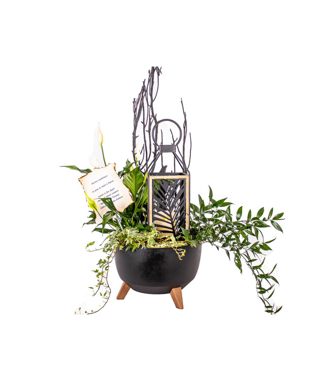 Ruscus italien, lys de paix, lierre, roche, branche, lanterne Lire plus.