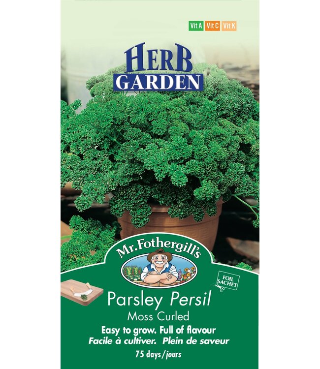 Bisannuelle. Persil vert frisé pour taboulé , salade de pommes de terre et garniture. Goût moins prononcé que le persil italien.