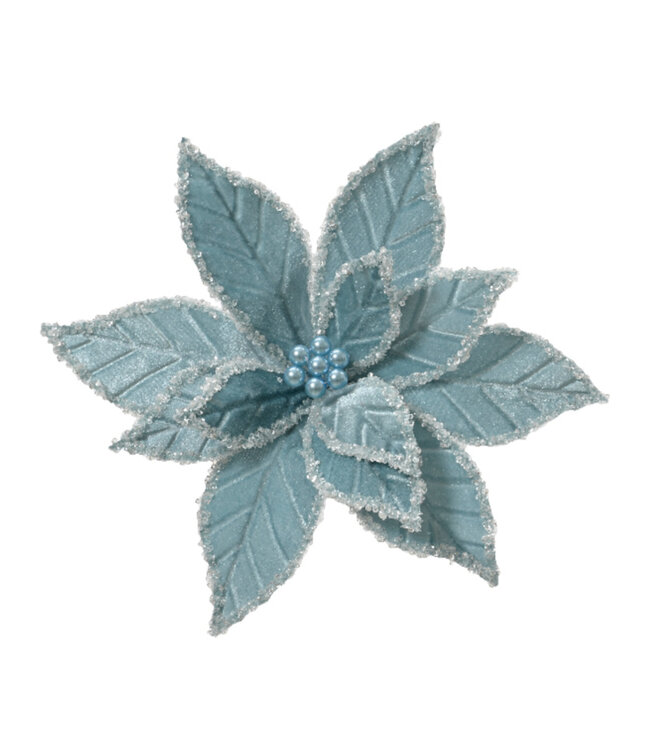 Le poinsettia sur pince 12,5 po en velours bleu revisite la fleur emblématique de Noël avec une touche moderne et sophistiquée. Sa texture veloutée et sa teinte bleue profonde créent un contraste élégant qui attire le regard tout en apportant une sensation de calme et de bien-être.