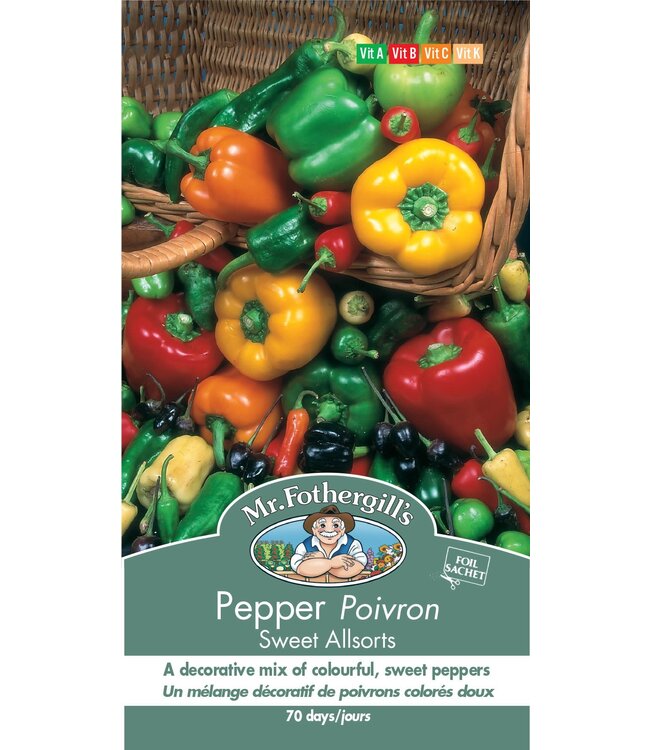 Mélange décoratif de poivrons doux. Idéal pour la cuisson ou les salades. Semez à l'intérieur 8 semaines avant le dernier gel.