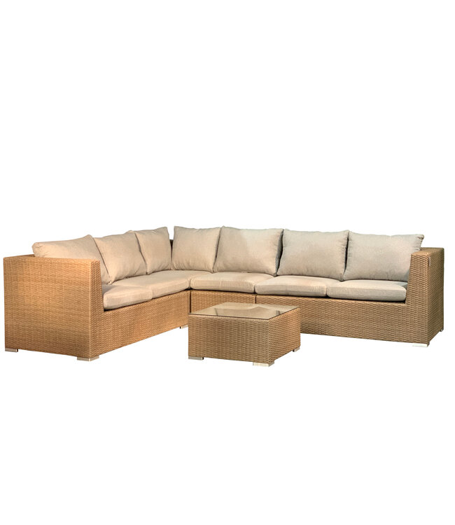 Il est fabriqué en rotin robuste ce qui lui permet de résister aux intempéries de notre climat. La dessus de la table en vitre permet un nettoyage facile lors des dégâts.