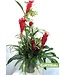 Cet arrangement comprend: ginger, rose, song india, monstera, fougère, emerald dans un vase en céramique.
