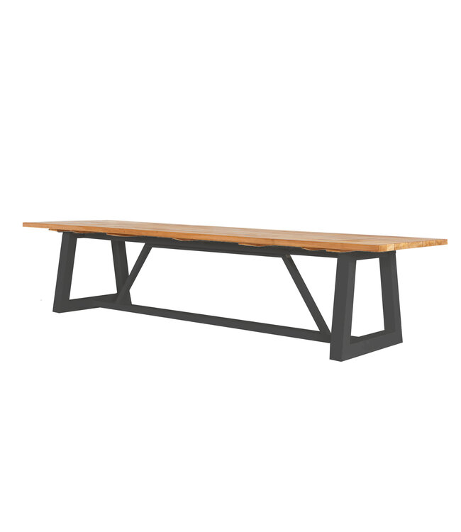 La table SUNS Ovada se distingue par son plateau en teck certifié, un bois noble reconnu pour sa résistance aux intempéries et son charme naturel. Avec le temps, le teck développe une patine grisâtre chaleureuse, ajoutant une touche authentique à votre espace extérieur.